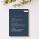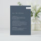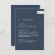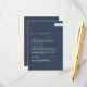 Specifikationskort för minimalt marint blått monogram Bröllop-minneskort.