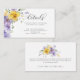 Specifikationskort för Lavender Gult Lila blommor Bröllop. Blommigt bröllop-detaljkort med handmålade vattenfärgblommor i skuggor av lila lavender och skarp gult med modernt kalligrafi-skript. Fullständigt anpassade bröllop-informationskort. Lägg till uppgifter om bröllop, ändra typsnitt, placera blommorna och färg framför och bakom kortet.