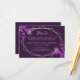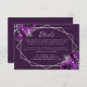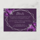 I den här eleganten finns ett kort för modern bröllop-information med ett silver-geometriskt ram som är dekorerat med lila blommor och silver faux glitter på djupa lilor. I anpassadet kombineras silver grått med vismisk handskrift och kopparplåt typsnitt. Baksidan är solid lila.