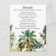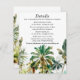 Den här eleganten och det vackra detaljkortet bröllop har en strand och handflatan träd. Texten kombinerar handskript och sans serif typsnitt för en snyggt och ett modernt utseende. Det här är perfekt för en sommarstrand eller ett tropiskt destinationsbröllop.