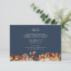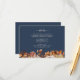 Kortet för detaljer om marinblå höst. Kortet "Navy Blue & Terracotta Fall Wedations" kompletterar helt och hållet den här detaljinformationen och ger dina gäster den information de behöver i ett vackert designat format. Handmålade blommigtar i bränd orange, terracotta och kopparton mot en marin blå bakgrund skapar en elegant. Ange tonen för ett organiserat och tankfullt firande, lämna ingen detalj förbisedd.