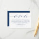 Berätta för dina gäster om dina uppgifter om bröllop med det här anpassadet bröllop-kortet. Den har enkel typografi, modern kalligrafi och ett enkelt gräns. Anpassa det här informationskortet för elegant bröllop genom att lägga till information om bröllop. Det här blåa detaljkortet för marinen är perfekt för bröllop, möhippor och så mycket mer.