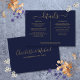 En personlig med för informationskort i elegant bröllop med dina speciella uppgifter i snyggt guld typografi och ditt datum namn och bröllop på motsatt sida på marin blå bakgrund. Du kan anpassa bakgrunden till ditt favorittema bröllop färg. Designad av Thisisnotme©