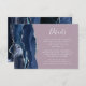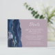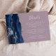 Den lämnat kant i denna elegant har ett kort för modern detaljrikedom i bröllop ett marint blått vattenfärgsagat gräns som trimmas med faux silver glitter. Rubriken visas i handskriftsskript, med anpassadet nedan i vitt teckensnitt på en bättre lila bakgrund. Den omvända sidan har en matchande marin blå och silver-agate-design.