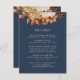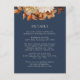 Specifikationskort för marinblå fallskärm i Terracotta Blommigt Bröllop. Den här eleganten och den roliga bröllopsinbjudan innehåller handmålad vattenfärg, bränd orange och terracotta löv, kräm och beige dahlias, och vacker rost-färgad ro perfekt för ett fall eller höst bröllop! Den här designen är en del av uppsättningen Höst Romantik som kan visas genom att klicka på uppsamlingslänken ovan.
