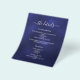 Observera att detta program är pappert och mycket tunt. Kuvert ingår inte. För tjockare program (samma design), besök vår butik. Ett modernt program/detaljer/tidslinje för elegant bröllop. En marin blå färgad bakgrund. Den blå färg är ojämn. Anpassa och lägg till information om namn och bröllop. Vit färgad brev. Text på båda sidor. Lägg till webbplatsens URL för bröllop i QR-koden.