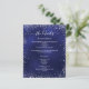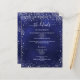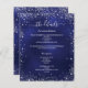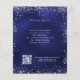 Ett modernt program/detaljer/tidslinje för elegant bröllop. En marin blå färgad som dekoreras med faux silver glitter-gnistor. Den blå färg är ojämn. Anpassa och lägg till information om namn och bröllop. Vit färgad brev. Text på båda sidor. Lägg till webbplatsens URL för bröllop i QR-koden. 1 lakan = 1 program tryckt kant till kant.