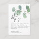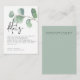 Mini-format: 3,5 x 2,5 tum med den här informella skriptfacket Eucalyptus Bröllop Detaljer Grönt. Huvudet är i en elegant som ställer in handskriftsformat stil med detaljerna under och grönt eucalyptus lövs överst. Anpassa enkelt dina egna detaljer.