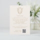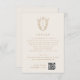 Detta minsta miljökort för grädde och enkla bröllop-detaljer från Daphne Collection är perfekt för ett traditionellt bröllop. Den enkla men klassiska designen har ett monogram för elegant och tidlös ornerad vapensköld med blommigtar och grön omgivning kring parets initialer. Anpassa ditt visitkort med information om din bröllopsinbjudan till din bröllop webbplats adress och QR-kod för gäster så att de enkelt kan få OSA online.