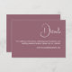 alla viktiga detaljer med minneskortet Minimal Dusty Rosa Bröllop Details Enclosure Card. Med en mjuk bakgrund för dammig rosa leder fronten dina gäster till bröllop webbplats för ytterligare information. Baksidan visar initialer och bröllop i och elegant, med en personlig och sofistikerad beröring. Perfekt för modernt, romantiskt eller boho bröllop, det här kortet för djurutrymme är både praktiskt och snyggt, vilket förbättrar din bröllop-kontorssvit med värme och charm.