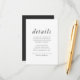 Specifikationskort för minimalistisk Mörk Grått och Vita Bröllop gäst.