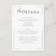 Slimmad, sofistikerad och smidigt elegant - detta moderna bröllop-kort för detaljdetaljer är perfekt för paret som inte har någon tidsinställd utformning i kärlek med en contemporary vrid. Med skarp svart text i träkol på en ren vit bakgrund ramas layouten av ett tunt öppet gräns som lägger till bara högernas detaljer. Händelseinformationen visas i ett modernt teckensnitt med minimalistisk karaktär. Elegant och underdrift. Den här utformningen kommer att imponera. Skapat av Farmhouse Press.