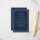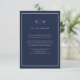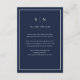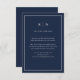 De här eleganterna, de moderna bröllop-gästkorten, har en enkel marin, blå och vit minimalistisk textdesign med initialer eller monogram och ett klassiskt mörk blått ram. Du kan använda dessa kort för köranvisningar, mottagnings- eller transport-information, hotell- eller inkvarteringsinformation och alla andra bröllop-uppgifter som du behöver dina gäster för att veta.