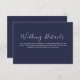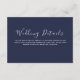Minimalistiskt, modernt detaljkort för marinblått bröllop med elegant med guld-rep i bakgrunden och enkelt kalligrafi-skript.