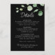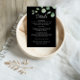 Detta minsta detaljkort för eucalyptus svarta bröllop är perfekt för att ge en komplimang till ett rustiskt bröllop. Utformningen har ett vackert calligrafteckensnitt och en vattenfärgseukalyptus i grönt i mörkens bakgrund.