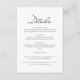 Vi presenterar vårt moderna och snyggt bröllop-kort för detaljer i djurutrymmet. Kortet har ett svart handskript med elegant och en klassisk text på vit bakgrund, skapar perfekt för formellt bröllop. Du kan också anpassa färgen på text och bakgrund så att den passar perfekt. Lägg till det här vackra kortet för djurutrymme i bröllop i dag och se till att alla gäster har alla viktiga detaljer som de behöver för din speciella dag!