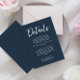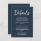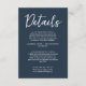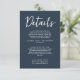 Information om mörk blått gästinformation för bröllop som är enkel och snyggt. Med marin blå bakgrund och vit textlayout. All information är anpassade som webbplats, transport, logi. Ta den tillsammans med andra produkter från den här klassens hand som gjorde bröllop svit.