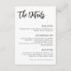 Inledning av kortet för Bröllop-informationssÀkring, ett sömlöst tillÀgg till arvodessamlingen, som Àr designat för att perfekt komplettera den minimalistiska bröllopsinbjudan. Revel i den tidlösa skönheten i svart pÄ vitt, en klassisk kombination som utan problem utstrÄlar sofistikering och enkelhet och som utgör scenen för en elegant firande i kÀrlek. LÀgg dina gÀster i anpassadet pÄ rena linjer och moderna estetik med det hÀr minneskortet. Dina unika uppgifter om stil och bröllop gÄr i centrum, och de har ett finslipat elegans. Den eleganta svarta typografin pÄ pristinvit ger inte bara ett slÄende första intryck, utan garanterar ocksÄ att varje detalj presenteras med klarhet och Àra, samtidigt som insamlingens engagemang för underskattad skönhet bibehÄlls. Bröllop-informationskortet Àr en arbetsyta för din personliga kontakt och Àr helt och hÄllet anpassade för att uppfylla dina behov. Kortet för detaljer i Bröllop Àr precis som hela Elegance Collection ett konstverk. Din resa tillsammans förtjÀnar inget mindre Àn det bÀsta, och detta kort lovar att vara en harmonisk komplement till den minimalistiska bröllopsinbjudan. Den Àr genomsyrad av sofistikering och anpassade och anger perfektens ton för ett firande som spegel Àr den raffinerade skönheten i kÀrlek.