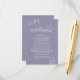 Specifikationskort för boho Soft Violet Minimal Löv Elegant Calligraphy Bröllop med QR-kodsökning.