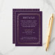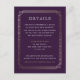 Hämta de här moderna detaljkorten och se till att ingen får borttappad på vägen till bröllopsdagen genom att skicka dem till dina gäster, alla detaljer, transport och inkvarteringar på dessa moderna konsthandlingskort. De här korten är inspirerade av blixtklänningarna från 1920-talet och har en intrikat faux-folie gräns i guld på en rik plommonbakgrund med tidlös typografi. Baksidan har en vacker vintage faux guld foil mönster och den matchar perfekt resten av denna "Vintage Beaded" bröllop samling. Samordningsfrågor i färg! Anpassa dem med paletten och informationen om bröllop färg.