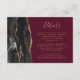 Den lämnat kant i denna elegant har ett kort för modern detaljrikedom i bröllop ett svart vattenfärgat agat gräns som trimmas med faux guld glitter. Texten finns i handskriftsskript för guld färgad och typsnitt på en burgundröd bakgrund. Den omvända sidan har en matchande svartvit och guld agate-design.