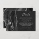 Den lämnat kant i denna elegant har ett kort för modern detaljrikedom i bröllop ett svart vattenfärgat agat gräns som trimmas med faux silver glitter. Titeln är i handskriftsskript, med anpassadet nedan i ljusfärgat grått-färgteckensnitt på en bakgrensfärgad bakgrund. Den omvända sidan har en matchande svartvit och silver agate-design.