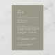 Det här moderna grönt bröllop-detaljkortet för chic är perfekt för ett enkelt bröllop. Den minsta boho-konstruktionen har en strålande unik och snyggt bohemisk typografi i en oliv grönt jordton färg.