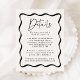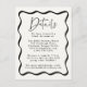 Fyll i din bröllop-svit med vårt moderna Cream- och Black Vågigt Ram bröllop-kort. Det här kortet har samma återdesign som vår inbjudan och har en svart vågigt ram gräns som omger dina viktiga uppgifter om bröllop, t.ex. bröllop, hotellrum, riktningar och bröllop på en krämbakgrund.