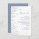Kortet bröllop visar en fantastisk gräns av vackra, flytande botaniska illustrationer av dammig blått hand plockade som skapar en känsla av naturlig elegans. Det känsliga skript som parats med tydlig, läsbar typografi erbjuder en sofistikerad och inbjudande appell. Den mjuka blåa och vita paletten färg väcker en känsla av lugn och klassisk skönhet, skapar den perfekt för ett raffinerat och friskt tillfälle.