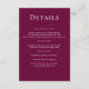Information om Modern Elegant Burgundy Bröllop Tilläggskort