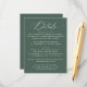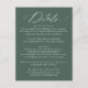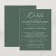 Kortet bröllop i snyggt innehåller information om höljet med elegant med "Information" om stavning för vit kalligrafi mot rikens mörk grönt bakgrund. Anpassa den med dina viktigaste uppgifter om bröllop, inklusive mottagningsinformation, hotellrum och bröllop webbplats, allt med fetstil och vit text. Den moderna, enkla och enkla utformningen av eleganten är perfekt för både formellt och avslappnad bröllop och skapar det som ett mångsidigt val för vilken säsong som helst. Perfekt för att hålla dina gäster informerade samtidigt som du lägger till en sofistikerad beröringspunkt i bröllop-kontoret, så ger det här kortet både funktion och skönhet för din speciella dag.