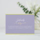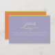 Ta del av den moderna elegansens väsen med vårt minimalistiska detaljkort för bröllop. Det här kortet är sofistikerat och har fet, skarp orange i sol, lila i pastellform och accenter i ny grönt som ger dig en livfull beröring till bröllop. Med ett skakande guld-rep-hjärta, som symboliserar det varaktiga bandet mellan dig och din partner, är detta kort en sann återspegling av din kärlek-historia. Det enkla manuset förmedlar elegant alla viktiga detaljer och ser till att dina gäster informeras utan tidsschema.