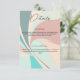 Den här bröllop-kortdesignen har ett 1970-talets reflexkänsla av persiko-, teal-, tan- och akvarieväxlar. Mjukt och feminin än trendig. Kortet är en del av Modern Retro Groovy Peach Teal & Aqua Bröllop Suite som skapats av enbart Farmhouse Press.