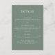 Minimala och moderna höljeskort för grönt bröllop med information och information till gästerna i bröllop. Contemporary och modern utformning med ett botaniskt mönster i teckning bläck på baksidan.