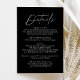 Kort för enkel information och elegant bröllop med handskrivet vitt skript blandat med modernt skript mot svart bakgrund. Anpassa det minimalistiska bröllop-kortet med information om bröllop, t.ex. mottagningsinformation, hotellrum, bröllop webbplats osv. Svartvit bröllop-kort är perfekt för det moderna bröllop.
