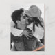 Temapartynas moderna terracotta bröllop-detaljritning visar ditt foto som ett geometriskt inslag och en bakgrund. Ditt favoritfoto på förlovningen är den här minimalistiska designens stjärna. Den konverteras automatiskt till svart vitt och upprepas på baksidan längs en smuts med ditt bröllop-datum och "Just KÄRLEK!" Handskriven typografi parad med modern blockering som dekorerar designen. #CasualWedding
