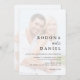 Modern minimalist med två av dina favoritfoton bröllopsinbjudan med detaljerna i baksidan.