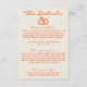 Information om bröllop-gästinformation om enkel och snyggt återfyllnadsfärg. Med en grumlig bakgrund och orange textlayout med vita ord. Och handritade bröllopsringar och handskriven information. Och rosa funk bakgrund med orange vismisk text på baksidan. All information är anpassade som webbplats, transport, logi. Ta den tillsammans med andra produkter från denna klassade hand som tillverkades av retro bröllop-svit.