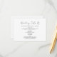 Behålla som dina gäster informerade om i stil med vårt moderna miljökortet för minhandskriftsteckensnitt i Bröllop. Den här eleganta designen har ett modernt handskriftsteckensnitt med stil för sidhuvudena, kompletterat med ett rent, minimalistiskt serif-teckensnitt för detaljerna. Med det här kortet kan du enkelt använda anpassadet för att inkludera viktig information, t.ex. bröllop-datum, klockslag, plats, adresskod och instruktioner för OSA. Perfekt för contemporary bröllop, dess tidslängd och förfinade layout säkerställer att du får en sammanhängande och elegant som tillägg till din bröllop-kontorssvit.