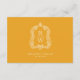 Den här eleganten har ett bröllop-kort med detaljerad information om höljet med klassisk vit text i en marigold gult. På baksidan av kortet omger en vit vapensköld av vintagen utandning av sädesvätska parets monogram initialer, med nedanstående datum för namn och bröllop.