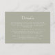Den här eleganten har ett bröllop-kort med detaljerad information om höljet med klassisk vit text på en grönt. På baksidan av kortet omger en vit vapensköld av vintagen utandning av sädesvätska parets monogram initialer, med nedanstående datum för namn och bröllop.