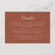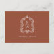 I den här eleganten finns ett kort för aktuell information om höljet i bröllop med klassisk vit text i terracotta-bakgrund. På baksidan av kortet omger en vit vapensköld av vintagen utandning av sädesvätska parets monogram initialer, med nedanstående datum för namn och bröllop.