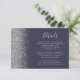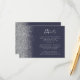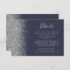Den lämnat kant i denna elegant har ett modernt-kort för detaljdetaljer i djurutrymmet i bröllop som har silver faux glitter. Med anpassadet kombineras handskrift av blek grått, tryckplåt och kursivt typsnitt på en djup sammetsblå bakgrund. Den omvända sidan har en passande mörk blått utformning och silver glitter.