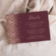 Det lämnar kanten i eleganten har ett kort för modern detaljrikedom i bröllop som har utformats för ro faux glitter i guld. Anpassadet kombinerar handskrift, rityta och kursivt typsnitt på blek ro färgad på en mörks burgundbakgrund. Baksidan har en passande mörk-burgundi och ro guld glitter.