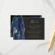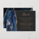 Den lämnat kant i denna elegant har ett kort för modern detaljrikedom i bröllop ett marint blått vattenfärgsagat gräns som trimmas med faux guld glitter. Titeln visas i handskriftsskript, med anpassade nedanför i guld färgad-typsnitt på en mörk-grått-bakgrund. Den omvända sidan har en matchande marin blå och guld-agate-design.