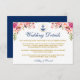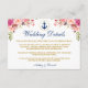 Nautical Blue Anchor och Guld, Watercolor Rosa Blommigt, Bröllop Details Insert Card