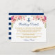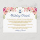 Nautical Blue Anchor och Guld, Watercolor Rosa Blommigt, Bröllop Details Insert Card - Stripe Back - Postcard Storlek