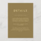 Ett förfinat minalistiskt bröllop-kort designat i en tidlös guld-bakgrund med elegant-skript. Perfekt för att dela viktig information, t.ex. logi, pendelschema eller mottagningsinformation med dina gäster. Det här kortet kompletterar alla moderna eller klassiska bröllop-svit och behållor som är sammanhängande och snyggt för bröllop-stationerna.