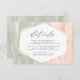 Snyggt, moderna bröllop-detaljkort med bröllop-detaljer som är framtagna av ett faux guld-folie geometriskt ram med dammig grönt och vattenfärgbakgrund för rosa. Anpassa genom att lägga till uppgifter om bröllop, t.ex. hotellrum, mottagningsinformation osv. Korten med detaljuppgifter om elegant bröllop samordnas med vår insamling av Rosa & Grönt Watercolor bröllop.