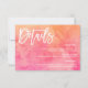 Fyll i bröllop-sviten med det här djärva och moderna informationskortet, som har en fantastisk vattenfärgsbakgrund i varmt korall, rosa och orange. Perfekt för att dela viktig bröllop-information, från mottagningsinformation till plats för platser och webbplatslänkar. En snyggt och konstnärlig beröring för ett sommar-, tropisk- eller destinationsbröllop!
